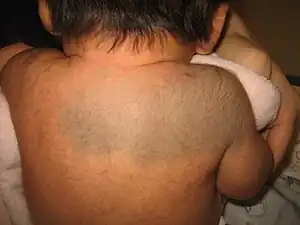 | Blue-grey segmental patch over the right posterior shoulder of a neonate | |