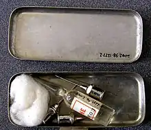 Coramine was used by suspected serial killer John Bodkin Adams when treating patient Gertrude Hullett, whom he was suspected of murdering.[1] However, the toxicity of nikethamide is quite low (LD50 rabbits 650 mg/kg oral, LD50 rats 240 mg/kg subcutaneous).