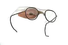The earliest known evidence of the use of ocular prosthesis is that of a woman found in Shahr-I Sokhta, Iran[1] dating back to 2900–2800 BC.[2] It has a hemispherical form and a diameter of just over 2.5 cm (1 inch). It consists of very light material, probably bitumen paste. The surface of the artificial eye is covered with a thin layer of gold, engraved with a central circle (representing the iris) and gold lines patterned like sun rays. On both sides of the eye are drilled tiny holes, through which a golden thread could hold the eyeball in place. Since microscopic research has shown that the eye socket showed clear imprints of the golden thread, the eyeball must have been worn during her lifetime. In addition to this, an early Hebrew text references a woman who wore an artificial eye made of gold.[3] Roman and Egyptian priests are known to have produced artificial eyes as early as the fifth century BC constructed from painted clay attached to cloth and worn outside the socket.[4]