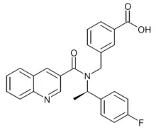 PF-05105679 is a drug which acts as a potent and selective blocker of the TRPM8 ion channel, which is the main receptor responsible for the sensation of cold. It was developed as a potential analgesic, and blocks the sensation of cold in both animals and human trials. It also lowers core body temperature in small mammals, but does not produce this effect in humans in the normal dosage range.[1][2][3]