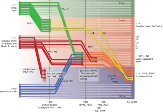 Genetic origins of the 2009 swine flu virus[78] | |||