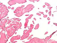 A papillary fibroelastoma is a primary tumor of the heart that typically involves one of the heart valves.[1] Symptoms vary with size and location of the tumor.[1] There may be no symptoms, when it may be detected when investigating another problem, or there may be symptoms of heart failure, feeling faint, chest pain, shortness of breath and sudden cardiac death.[2] There may be one tumor or many.[1]
