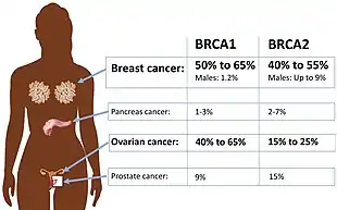 - ↑ Petrucelli, Nancie; Daly, Mary B.; Pal, Tuya (1993), Adam, Margaret P.; Feldman, Jerry; Mirzaa, Ghayda M.; Pagon, Roberta A. (eds.), "BRCA1- and BRCA2-Associated Hereditary Breast and Ovarian Cancer", GeneReviews®, Seattle (WA): University of Washington, Seattle, PMID 20301425, retrieved 2024-02-15