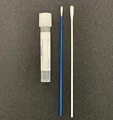 A swab of the discharge is usually performed by inserting the urethral swab into a held up penis to about half an inch and then turned before being removed and placed into the specimen container.[3] Other investigations may include tests for HIV, hepatitis and syphilis.[5]