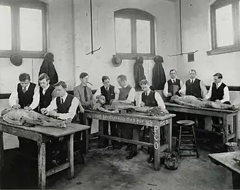 PCOM was established on January 24, 1899, as the Philadelphia College and Infirmary of Osteopathy (PCIO).[6] It was the third osteopathic medical school to open in the United States.[7] In September 1899, the first PCIO degree was awarded, and in February 1900, the first PCIO "class," comprising one woman and one MD, graduated. In May 1921, PCIO was renamed to Philadelphia College of Osteopathy (PCO).[8] In 1967, the school adopted its present-day name, becoming the Philadelphia College of Osteopathic Medicine (PCOM).[8]