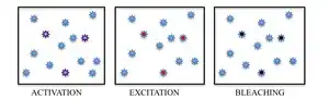 - ↑ Ha, Taekjip & Tinnefeld, Philip (2012). "Photophysics of Fluorescent Probes for Single-Molecule Biophysics and Super-Resolution Imaging". Annual Review of Physical Chemistry. 63 (1): 595–617. Bibcode:2012ARPC...63..595H. doi:10.1146/annurev-physchem-032210-103340. PMC 3736144. PMID 22404588.
