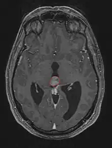 - ↑ Deshmukh VR, Smith KA, Rekate HL, Coons S, Spetzler RF (2004). "Diagnosis and management of pineocytomas". Neurosurgery. 55 (2): 349–55, discussion 355–7. doi:10.1227/01.NEU.0000129479.70696.D2. PMID 15271241.