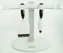 Typically the pipettes are vertically stored on holder called pipette stands. In case of electronic pipettes, such stands can recharge their batteries. The most advanced pipette stands can directly control electronic pipettes.[20]