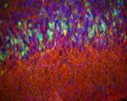 The piriform cortex in rodents and some primates has been shown to harbor cells expressing markers of plasticity such as doublecortin and PSA-NCAM which are modulated by the noradrenergic neurotransmitter system.[4][5]