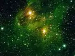 NASA's Spitzer Space Telescope and James Webb Space Telescope include instruments for obtaining both images and spectra of light emitted by PAHs associated with star formation. These images can trace the surface of star-forming clouds in our own galaxy or identify star forming galaxies in the distant universe.[39] In June 2013, PAHs were detected in the upper atmosphere of Titan, the largest moon of the planet Saturn.[40]