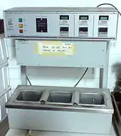 At the core of the PCR method is the use of a suitable DNA polymerase able to withstand the high temperatures of >90 °C (194 °F) required for separation of the two DNA strands in the DNA double helix after each replication cycle. The DNA polymerases initially employed for in vitro experiments presaging PCR were unable to withstand these high temperatures.[2] So the early procedures for DNA replication were very inefficient and time-consuming, and required large amounts of DNA polymerase and continuous handling throughout the process.