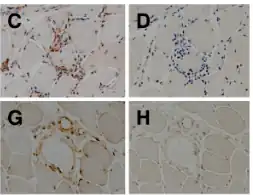 c,d,g,h)CX3CL1 expressions in affected muscle with polymyositis