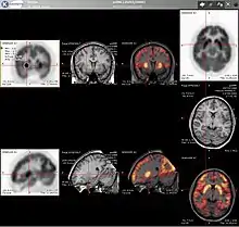 PET may also be used for the diagnosis of hippocampal sclerosis, which causes epilepsy. FDG, and the less common tracers flumazenil and MPPF have been explored for this purpose.[20][21] If the sclerosis is unilateral (right hippocampus or left hippocampus), FDG uptake can be compared with the healthy side. Even if the diagnosis is difficult with MRI, it may be diagnosed with PET.[22][23]