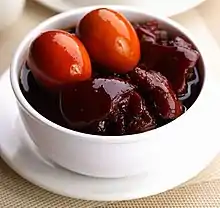 A common dish is pork knuckles with ginger and black vinegar as pork knuckles are believed to help replenish calcium levels in women. Ginger is featured in many dishes, as it is believed that it can remove the 'wind' accumulated in the body during pregnancy. Meat-based soup broths are also commonly consumed to provide hydration and added nutrients.