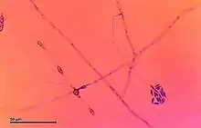 Pythium is a genus of parasitic oomycetes. They were formerly classified as fungi. Most species are plant parasites, but Pythium insidiosum is an important pathogen of animals, causing pythiosis. The feet of the fungus gnat are frequently a vector for their transmission.[1]