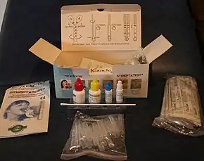 A rapid strep test (RST) is wused in clinics to assist in the diagnosis of strep throat.[1] While less accurate compared to a throat swab results are rapid.[2]
