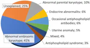 - ↑ Sugiura-Ogasawara M, Ozaki Y, Katano K, Suzumori N, Kitaori T, Mizutani E (August 2012). "Abnormal embryonic karyotype is the most frequent cause of recurrent miscarriage". Human Reproduction. 27 (8): 2297–2303. doi:10.1093/humrep/des179. PMID 22661547.