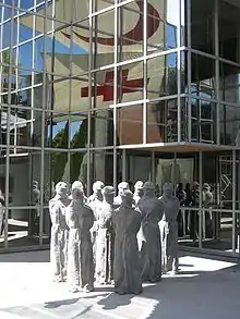 Maurice Rossel was sent to Berlin as a delegate of the International Red Cross; he visited Theresienstadt Ghetto in 1944. The choice of the inexperienced Rossel for this mission has been interpreted as indicative of his organization's indifference to the "Jewish problem", while his report has been described as "emblematic of the failure of the ICRC" to advocate for Jews during the Holocaust.[17] Rossel's report was noted for its uncritical acceptance of Nazi propaganda.[lower-alpha 1] He erroneously stated that Jews were not deported from Theresienstadt.[18] Claude Lanzmann recorded his experiences in 1979, producing a documentary entitled A Visitor from the Living.[20]