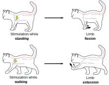 - ↑ Forssberg H, Grillner S, Rossignol S (August 1977). "Phasic gain control of reflexes from the dorsum of the paw during spinal locomotion". Brain Research. 132 (1): 121–39. doi:10.1016/0006-8993(77)90710-7. PMID 890471. S2CID 32578292.