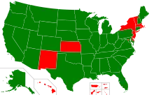 In May 2014, Colorado became the first state to pass a right-to-try law.[6] As of August 2018, 41 states had enacted such laws: Alabama, Alaska, Arizona, Arkansas, California, Colorado, Connecticut, Florida, Georgia, Idaho, Iowa, Illinois, Indiana, Kentucky, Louisiana, Maine, Maryland, Michigan, Minnesota, Mississippi, Missouri, Montana, Nebraska, Nevada, New Hampshire, North Carolina, North Dakota, Ohio, Oklahoma, Oregon, Pennsylvania, South Carolina, South Dakota, Tennessee, Texas, Utah, Virginia, Washington, West Virginia, Wisconsin, and Wyoming.[5][7][8][9]