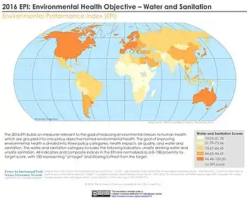 Text was copied from this source, which is available under a Creative Commons Attribution 4.0 International License Archived 2017-10-16 at the Wayback Machine - ↑ Ritchie, Roser, Mispy, Ortiz-Ospina (2018) "Measuring progress towards the Sustainable Development Goals." (SDG 6) SDG-Tracker.org, website
