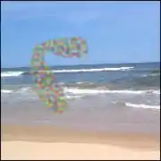 Flickering animation of a scintillating scotoma, where the scintillations were of a zigzag pattern starting in the center of vision, surrounded by a somewhat larger scotoma area with distortion of shapes but otherwise melting into the background similarly to the physiological blind spot.