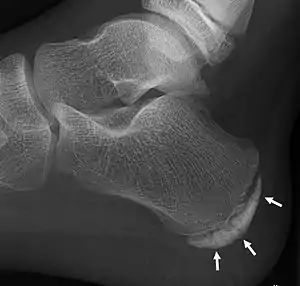 Calcaneal apophysitis, also known as Sever's disease, is an inflammation at the back of the heel in growing children.[1] Often there is pain in the heel particularly during a growth spurt.[2]