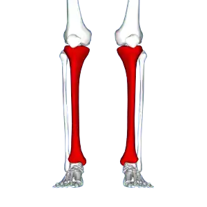 Red area represents the tibia. Pain is generally in the inner and lower 2/3rds of tibia.