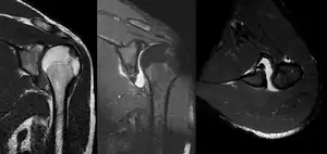 A diagnosis of shoulder dislocation is often suspected based on the person's history and physical examination. Radiographs are made to confirm the diagnosis. Most dislocations are apparent on radiographs showing incongruence of the glenohumeral joint. Posterior dislocations may be hard to detect on standard AP radiographs, but are more readily detected on other views. After reduction, radiographs are usually repeated to confirm successful reduction and to detect bone damage. After repeated shoulder dislocations, an MRI scan may be used to assess soft tissue damage. In regards to recurrent dislocations, the apprehension test (anterior instability) and sulcus sign (inferior instability) are useful methods for determining predisposition to future dislocation.