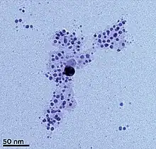 - ↑ Hussain SM, Hess KL, Gearhart JM, Geiss KT, Schlager JJ (October 2005). "In vitro toxicity of nanoparticles in BRL 3A rat liver cells". Toxicology in Vitro. 19 (7): 975–983. doi:10.1016/j.tiv.2005.06.034. PMID 16125895.