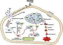 Sleep is necessary to repair cellular damage caused by reactive oxygen species and DNA damage. During long-term sleep deprivation, cellular damage aggregates up to a tipping point that triggers cellular degeneration and apoptosis. REM sleep deprivation causes an increase in noradrenaline (which incidentally causes the person sleep deprived to be stressed) due to the neurons in the locus coeruleus producing it not ceasing to do so, which causes an increase in the activity of the Na⁺/K⁺-ATPase pump, which itself activates the intrinsic pathway of apoptosis[64] and prevents autophagy, which also induces the mitochondrial pathway of apoptosis.