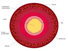 | Muscularis externa | Longitudinal and circular layers, with Auerbach's (myenteric) plexus in between | Same as duodenum | Same as duodenum |