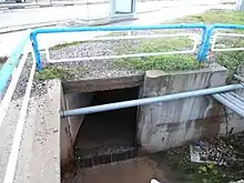 A storm drain, storm sewer (United Kingdom, U.S. and Canada), surface water drain/sewer (United Kingdom), or stormwater drain (Australia and New Zealand) is infrastructure designed to drain excess rain and ground water from impervious surfaces such as paved streets, car parks, parking lots, footpaths, sidewalks, and roofs. Storm drains vary in design from small residential dry wells to large municipal systems.