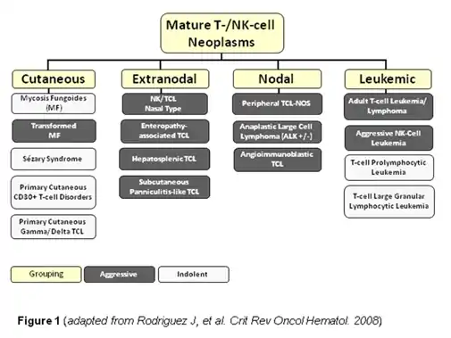 4. Vose JM (October 2008). "Peripheral T-cell non-Hodgkin's lymphoma". Hematol. Oncol. Clin. North Am. 22 (5): 997–1005, x. doi:10.1016/j.hoc.2008.07.010. PMID 18954748.