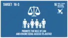 The full text of Target 16.3 is: "Promote the rule of law at the national and international levels and ensure equal access to justice for all."[6]