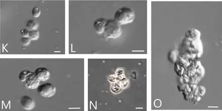 - ↑ Brown MW, Kolisko M, Silberman JD, Roger AJ (2012). "Aggregative Multicellularity Evolved Independently in the Eukaryotic Supergroup Rhizaria". Current Biology. 22 (12): 1123–1127. doi:10.1016/j.cub.2012.04.021. PMID 22608512. S2CID 17510471.