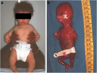 a) Bilateral absence of radius b) Fetus- bilateral radial aplasia