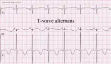 T wave alternans (TWA) is a periodic beat-to-beat variation in the amplitude or shape of the T wave in an electrocardiogram (ECG or EKG) TWA was first described in 1908. At that time, only large variations ("macroscopic" TWA) could be detected. Those large TWAs were associated with increased susceptibility to lethal ventricular tachycardias.