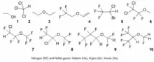 - ↑ Koblin DD, Chortkoff BS, Laster MJ, Eger EI II, Halsey MJ, Ionescu P (1994). "Polyhalogenated and perfluorinated compounds that disobey the Meyer-Overton hypothesis". Anesthesia & Analgesia. 79 (6): 1043–1048. doi:10.1213/00000539-199412000-00004. PMID 7978424.