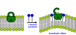 These observations were important because they demonstrated that general anaesthetics exert their effect non-specifically including when binding to proteins. This also opened up the possibility that anesthetics could work through direct binding to proteins, rather than affect membrane proteins indirectly through nonspecific interactions with lipid bilayer as mediator.[14][39] It was shown that anaesthetics alter the functions of many cytoplasmic signalling proteins, including protein kinase C,[40][41]