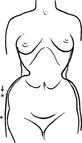Corsets were first worn by members of both sexes of Minoans of Crete, but did not become popular again until the sixteenth century. They remained a feature of fashionable dress until the French Revolution,[1] when corsets for women were designed mainly to turn the torso into a fashionable cylindrical shape, although they narrowed the waist as well. They had shoulder straps, ended at the waist, flattened the bust, and, in doing so, pushed the breasts up. The emphasis of the corset became less on the smallness of the waist than on the contrast between the rigid flatness of the bodice front and the curving tops of the breasts peeking over the top of the corset.