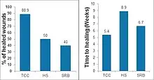 Figure 3 — Randomized, controlled clinical trial from 2014, comparing total contact casting (TCC), healing sandal (HS) and shear-reducing walking boot (SRB). Data replotted from Lavery et al. 2014.[40]