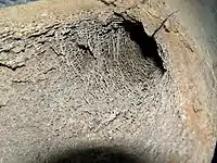 As in humans, the distribution of trabeculae in bird species is uneven and is dependent on load conditions. The bird with the highest density of trabeculae is the kiwi, a flightless bird.[16] There is also uneven distribution of trabeculae within similar species such as the great spotted woodpecker or grey-headed woodpecker. After examining a microCT scan of the woodpecker's forehead, temporomandibulum, and occiput it was determined that there is significantly more trabeculae in the forehead and occiput.[17] Besides the difference in distribution, the aspect ratio of the individual struts was higher in woodpeckers than in other birds of similar size such as the Eurasian hoopoe[17] or the lark.[18] The woodpeckers' trabeculae are more plate-like while the hawk and lark have rod-like structures networked through their bones. The decrease in strain on the woodpecker's brain has been attributed to the higher quantity of thicker plate-like struts packed more closely together than the hawk or hoopoe or the lark.[18] Conversely, the thinner rod-like structures would lead to greater deformation. A destructive mechanical test with 12 samples show the woodpecker's trabeculae design has an average ultimate strength of 6.38MPa, compared to the lark's 0.55MPa.[17]