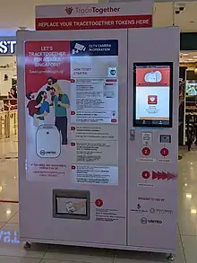 - ↑ "TraceTogether token vending machines to gradually replace physical booths; home delivery service launched for first-time users". TODAYonline. Archived from the original on 27 August 2021. Retrieved 27 August 2021.