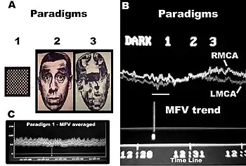 - ↑ Stroobant, N; Vingerhoets, G (2000). "Transcranial Doppler ultrasonography monitoring of cerebral hemodynamics during performance of cognitive tasks: A review". Neuropsychology Review. 10 (4): 213–231. doi:10.1023/A:1026412811036. PMID 11132101. S2CID 1110818.