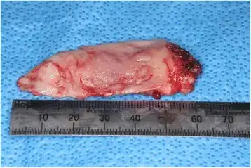 Diffuse traumatic neuroma-The lesion excised from the left side of the palatine mucosa was approximately 6×3 cm