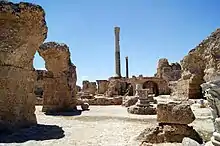 The ruins of the oldest known Islamic hammam in Morocco, dating back to the late 8th century, can be found in Volubilis.[17] Many historic hammams have been preserved in cities such as Marrakesh[30] and especially Fes, partly because they continue to be used by locals.[2][17] Among the best known examples is the 14th-century Saffarin Hammam in Fes, which has been restored and rehabilitated.[2][55][56][17] Moroccan hammams were typically smaller than Roman or Byzantine baths. They are often close to mosques to facilitate the performance of ablutions. Because of their private nature, their entrances are often discreet and their façades are typically windowless. Vestiges of the Roman bathing style can be seen in the three-room layout, which was widespread during the Roman/Byzantine period.