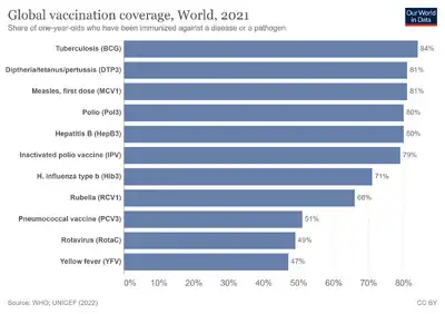 - ↑ "Global vaccination coverage". Our World in Data. Archived from the original on 3 July 2020. Retrieved 5 March 2020.