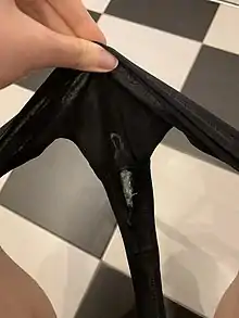 Vaginal discharge can be normal or abnormal.[2] Normal vaginal discharge occurs in most women and girls.[2] The amount, quality, and composition of discharge varies between individuals, throughout the menstrual cycle, and throughout the stages of sexual and reproductive development.[4] Normal vaginal discharge may have a thin, watery consistency or a thick, sticky consistency, and it may be clear or white in color.[1][2] Normal vaginal discharge typically does not have a strong smell, nor is it typically associated with itching or pain.[4] It may be large in volume, which occurs more often during pregnancy, when sexually active, or when taking birth control.[4][2]