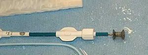 A device, known as the Amplatzer muscular VSD occluder, may be used to close certain VSDs.[9] It was initially approved in 2009.[9] It appears to work well and be safe.[9] The cost is also lower than having open heart surgery.[9] The device is placed through a small incision in the groin.[10]